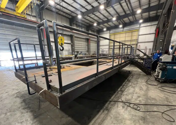 Forged for performance. Finished for durability. Overview: We’re working with an industrial manufacturer on their new facility, designing and fabricating platforms, hoppers, and chutes built to