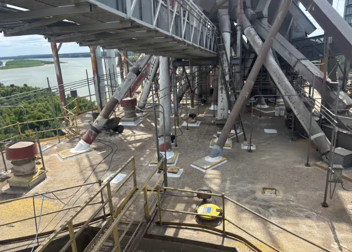 A customer had planned a full belt refurbishment, including rollers, belts, drives, and counterweights, during a scheduled outage. However, due to delayed supplies, they identified an opportunity to address corrosion concerns by sandblasting and painting the conveyor structure. Our Field Coatings team was entrusted with this critical task and had a mere seven days to complete the extensive 120 feet of conveyor and catwalk.